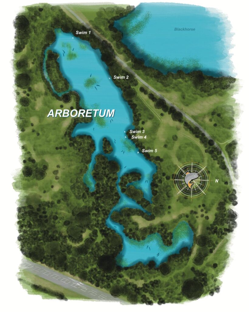 Arboretum is a secluded spring-fed 2.5-acre lake with 5 swims, surrounded by lily beds and overhanging trees creating an intimate yet exciting angling experience. This was the first lake made available for day-ticket fishing.