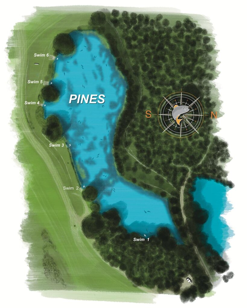 Pines can be found at the bottom end of Linford 1 if entering the site from Linford Lane, otherwise it is the first lake on the left hand side once you have crossed the bridge having entered from Wolverton Road.