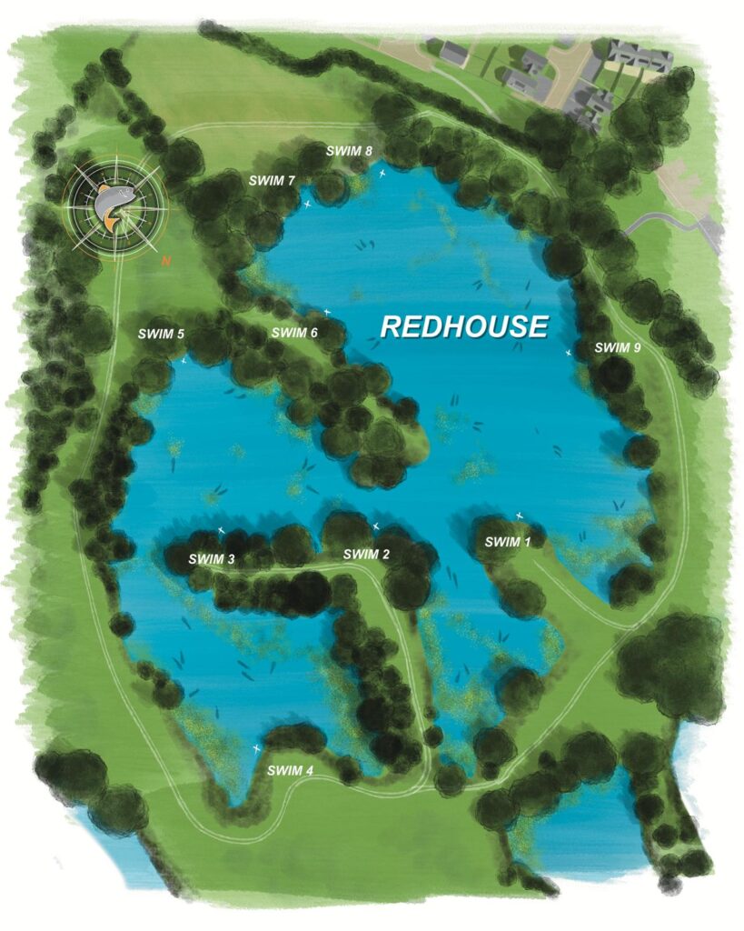 RedHouse lake can be found at the very end of Rocla lake. If you enter the site from Wolverton Road, before you cross the river there is a track to the right hand side, RedHouse can be found at the end of this track.